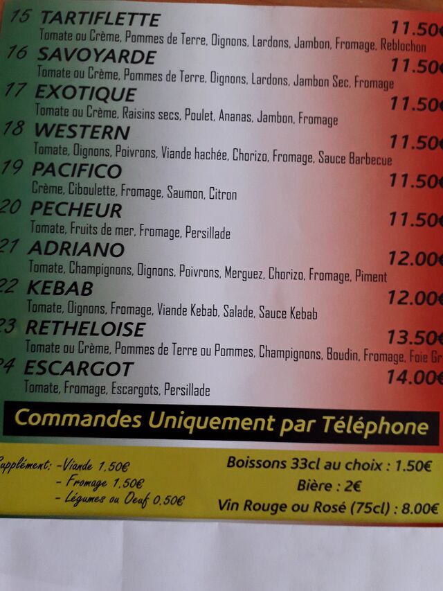 de la MARGUERITA à la FROMAGERE, de la TARTIFLETTE à la WESTERN..... sans oublier la BURGER